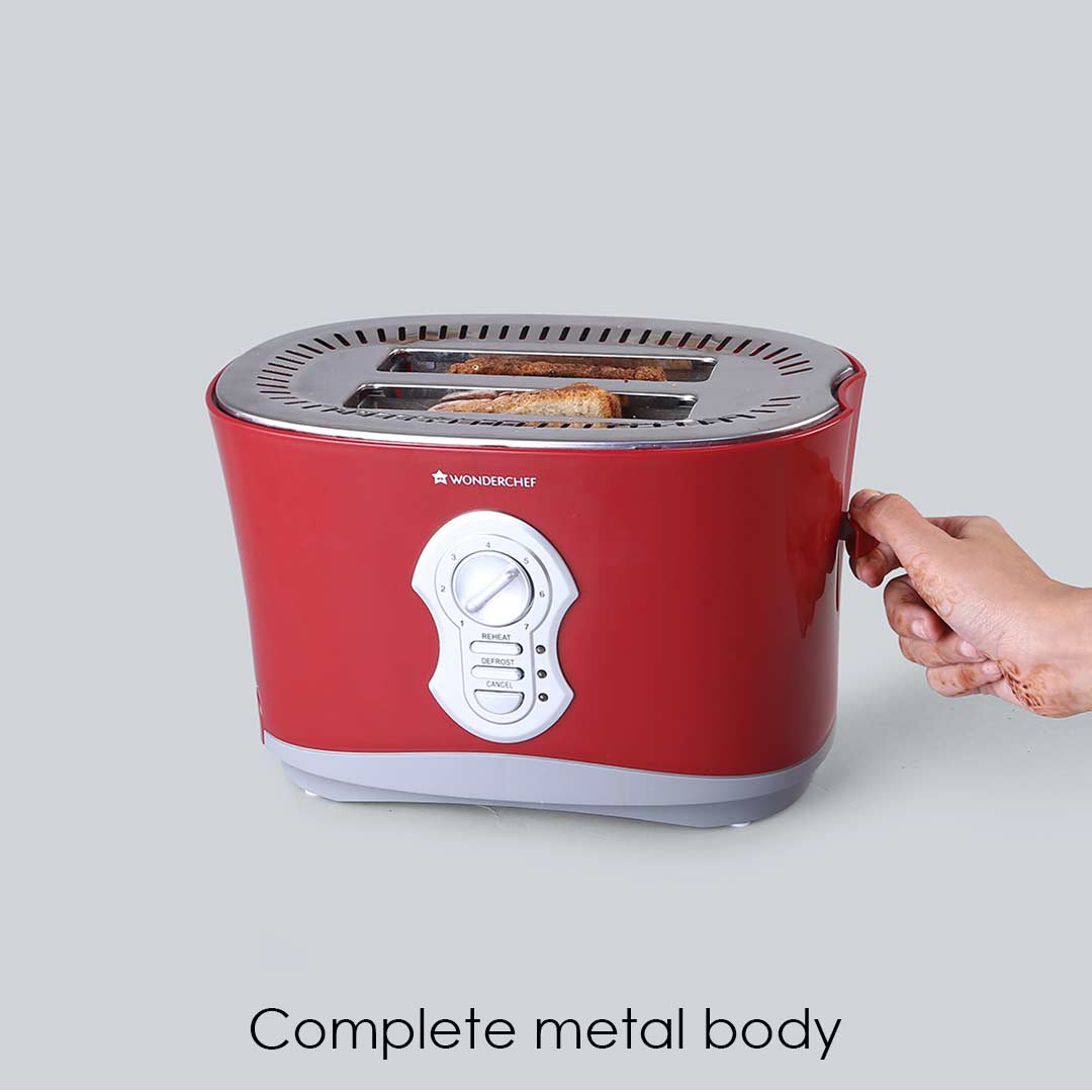 - BREAKFAST PARTNER: With its vibrant Crimson Red color, this toaster adds a pop of style to your kitchen while delivering exceptional performance.Simply place a few slices of bread into the toaster, and within minutes, you’ll be treated to perfectly toasted and appetizing toasts that are delightfully crunchy and delicious. .