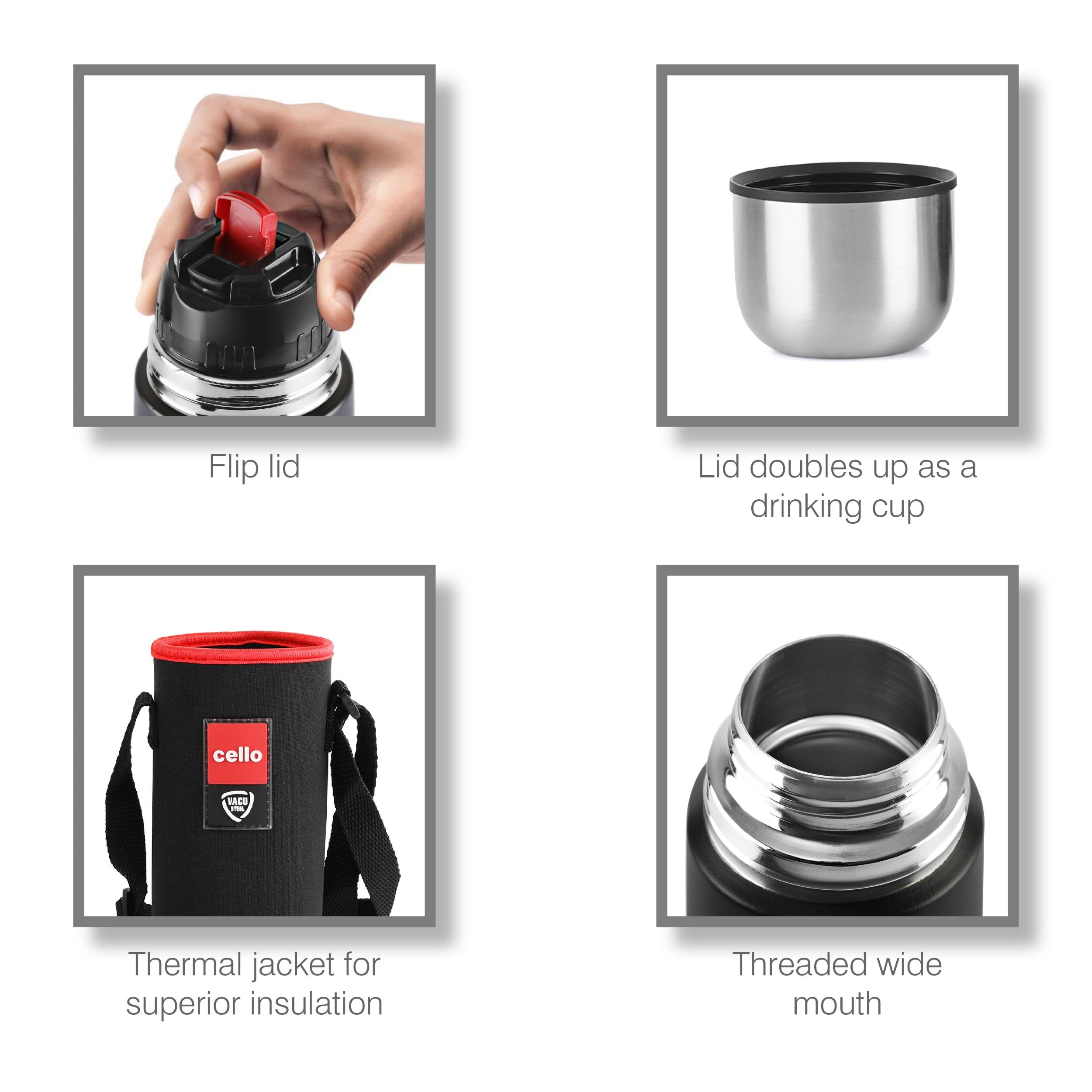 - Duro Flip Flask, a 500ml Vacusteel Water Bottle with a Thermal Jacket, is designed for adventurers, and offered in both black and green colors to cater to your personal preferences.