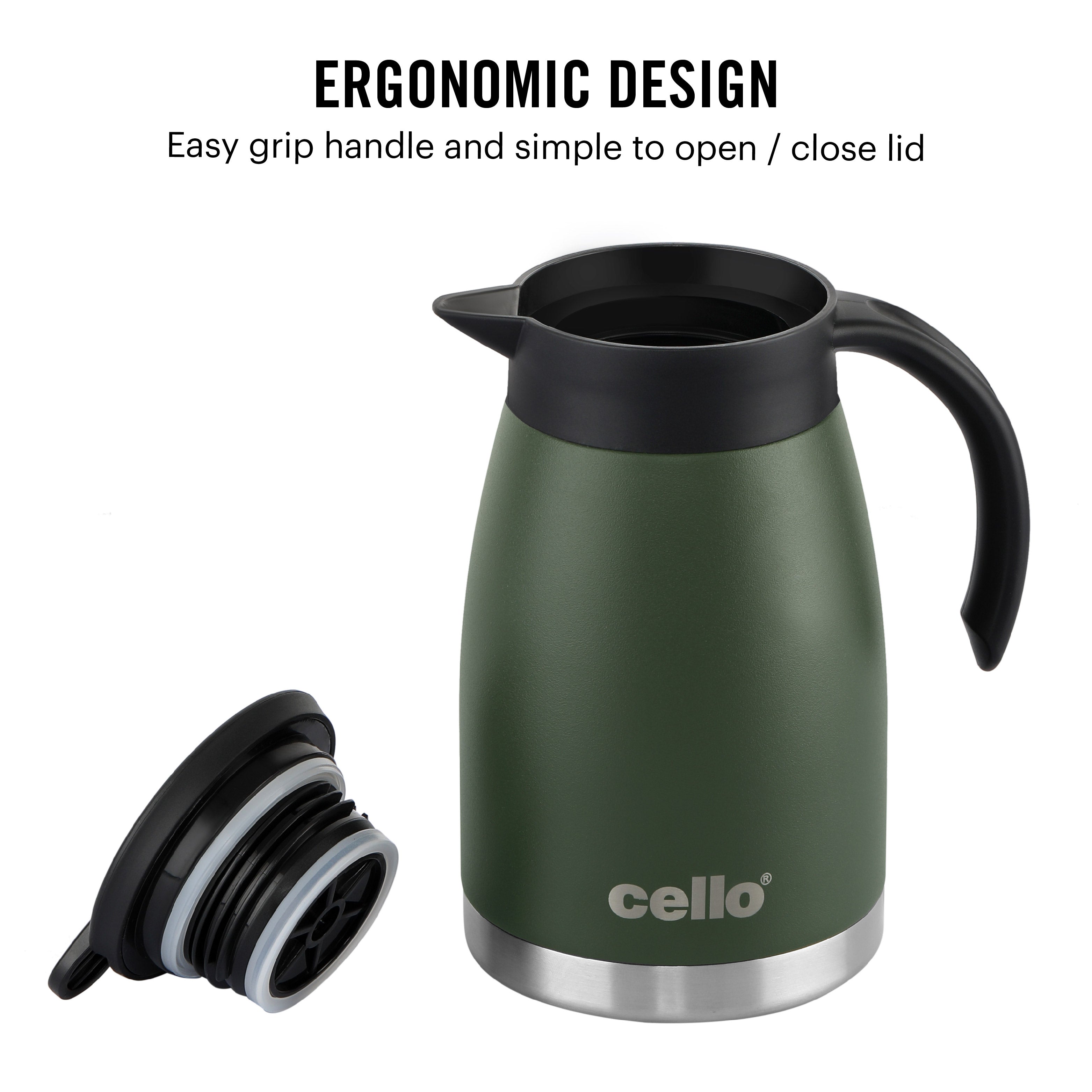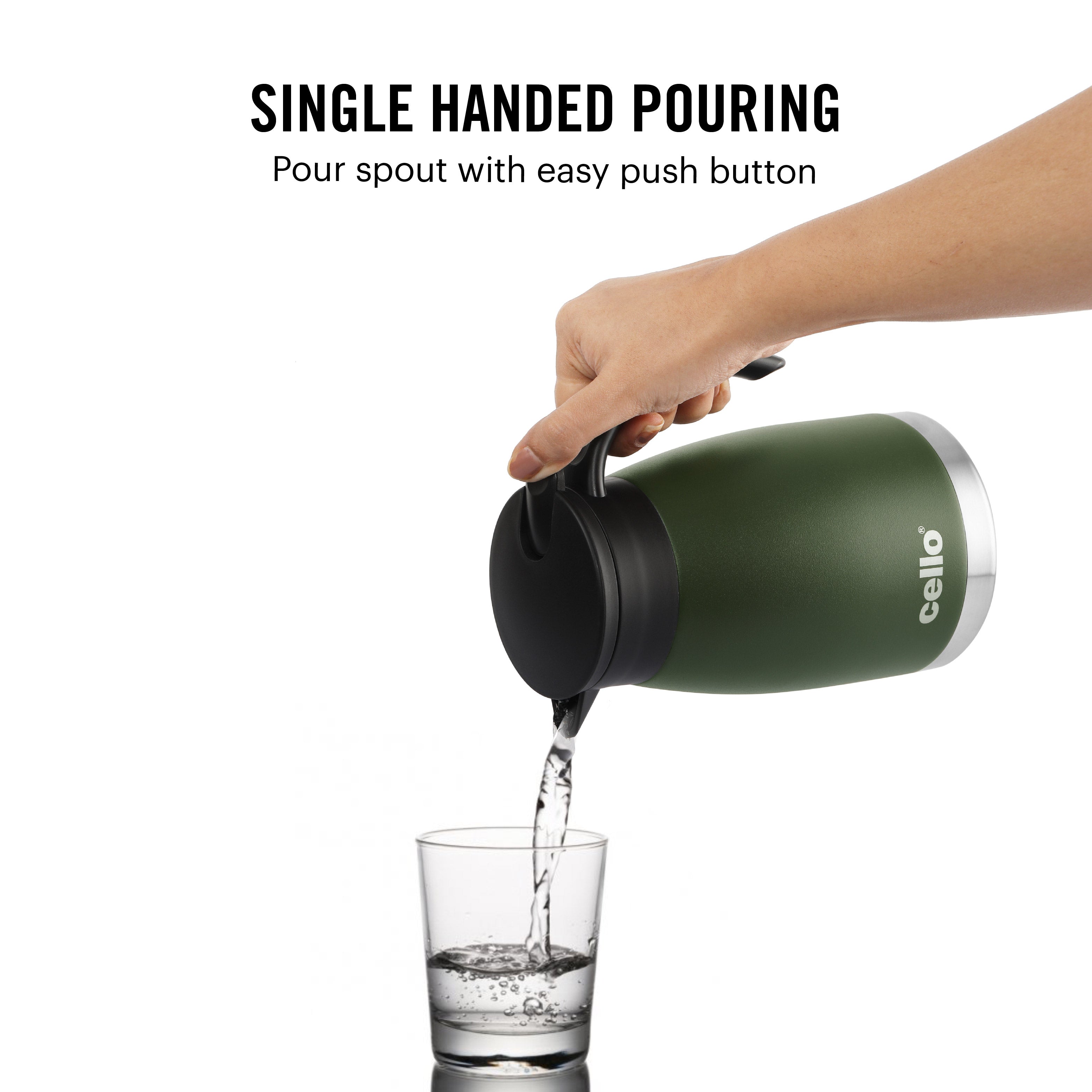 Cello Duro Pot Double Walled Vacuum Insulated Teapot is a must-have for coffee enthusiasts seeking a stylish and functional solution. With a substantial 800ml capacity, this teapot is the ideal choice for those who appreciate a significant amount of coffee. Crafted from premium stainless steel and equipped with cutting-edge vacuum insulation technology, it excels at maintaining the perfect temperature while preserving the rich flavor and freshness of your brew, ensuring it stays hot or cold for an extended period. The convenient push-button pour spout allows for effortless one-handed serving, making it a hassle-free option for any occasion, whether it’s a corporate event, a birthday celebration, or a casual breakfast with friends