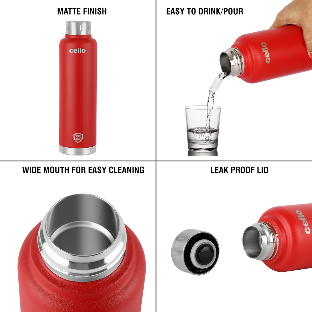 - Embrace your active lifestyle with the Duro Top Flask, a compact stainless steel Vacusteel Water Bottle by Cello, available in an array of appealing colors including Black, Blue, Green, and Red.
