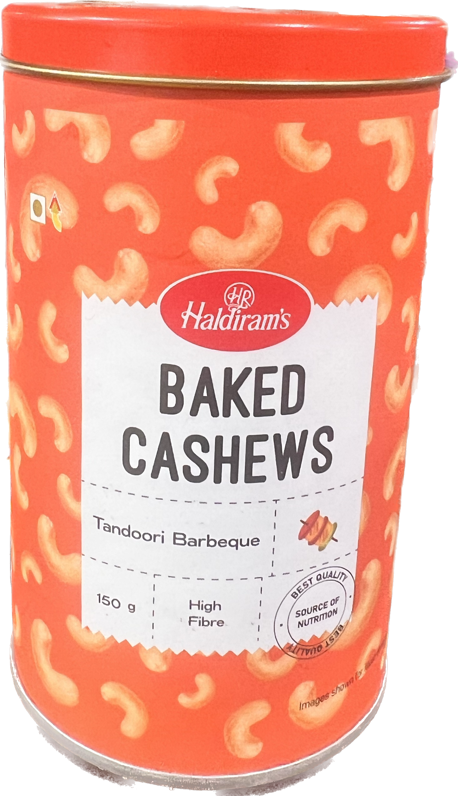Haldiram Baked Cashew Tandoori Barbeque, 150g: Experience the tantalizing taste of tandoori barbeque with the crunch of baked cashewsHaldiram’s Baked Cashew Tandoori Barbeque delivers a smoky and spicy flavor that will leave your taste buds satisfied.