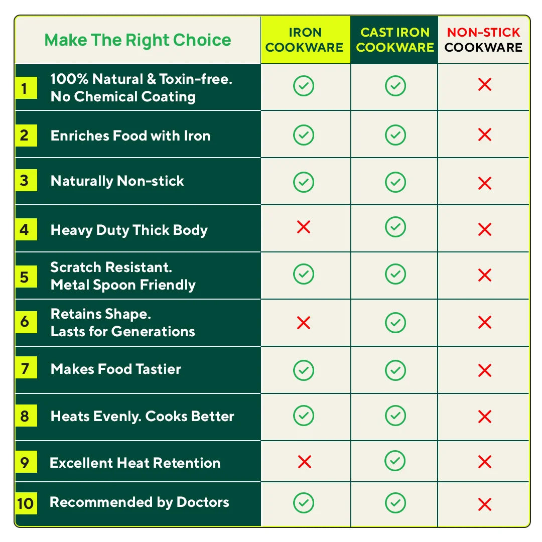 💊ENRICHES FOOD WITH IRON: The wok kadai enriches your meal with iron content that helps to fight iron deficiency.