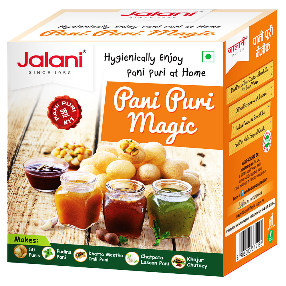 Treat your taste buds to the deliciousness of “Jalani Pani Puri Magic”, a hygienic and ready-to-eat version of India’s favorite street chaat. Packaged in a 270g box, this chatpata chatkaredar can be easily prepared at home without compromising on the unique taste of Pani Puri. Enjoy Jhatpat tayar Pani Puri now!
