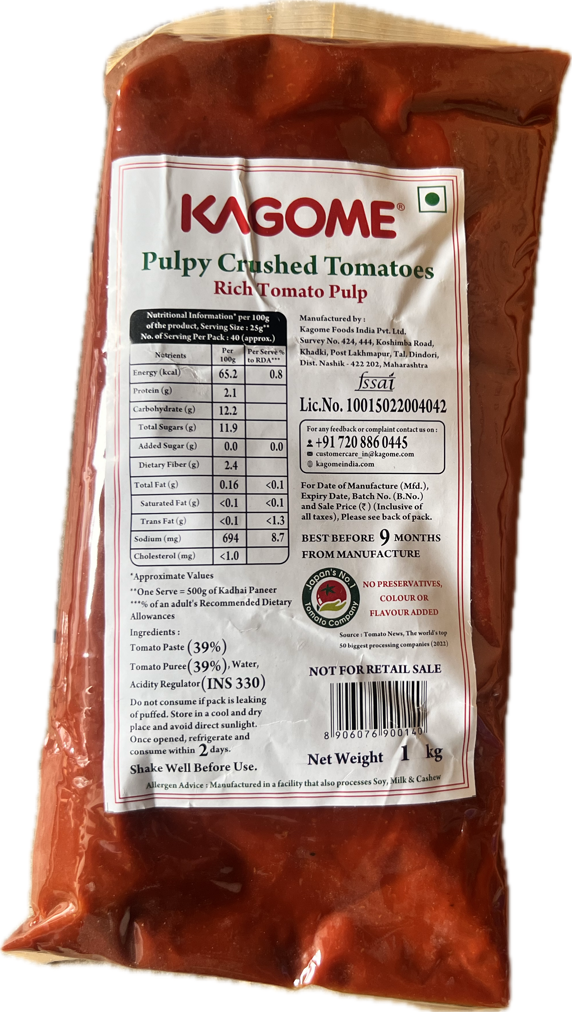 Kagome Pulpy Crushed Tomato – Rich Tomato Pulp – 1kg