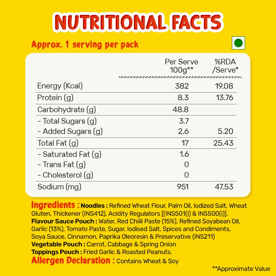 - CHOWMEIN FLAVOUR: Our all-new, Indo-Chinese flavour for your street food cravings! Made with premium soy sauce, roasted garlic and chilli peppers, it is mild on spice.