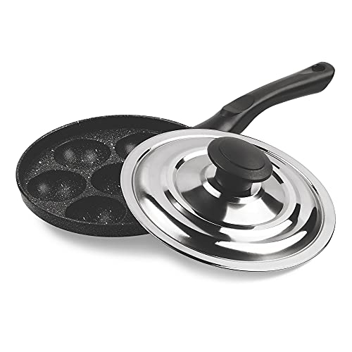 Details: The appam patra comes Uniquely designed for special dishes like Appams, Paniyarams Kuzhi Panniarrams, Puddus, Gunta Ponganalu, Neyyappam and other batter based delicacies. The Appam Patra comes with 5 layer food-grade non-stick coating which enhances both durability and cooking performance. The non-stick coating help in cooking with minimum oil or butter. As the food does not stick to the surface and can be easily scooped off. So it ensures hassle-free healthy cooking without spoiling the taste of the food. It comes with Bakelite handle that helps you lift the hot pan without the use of mittens or a cloth. Bakelite is poor conductor of heat so would not burn even when exposed to high heat.