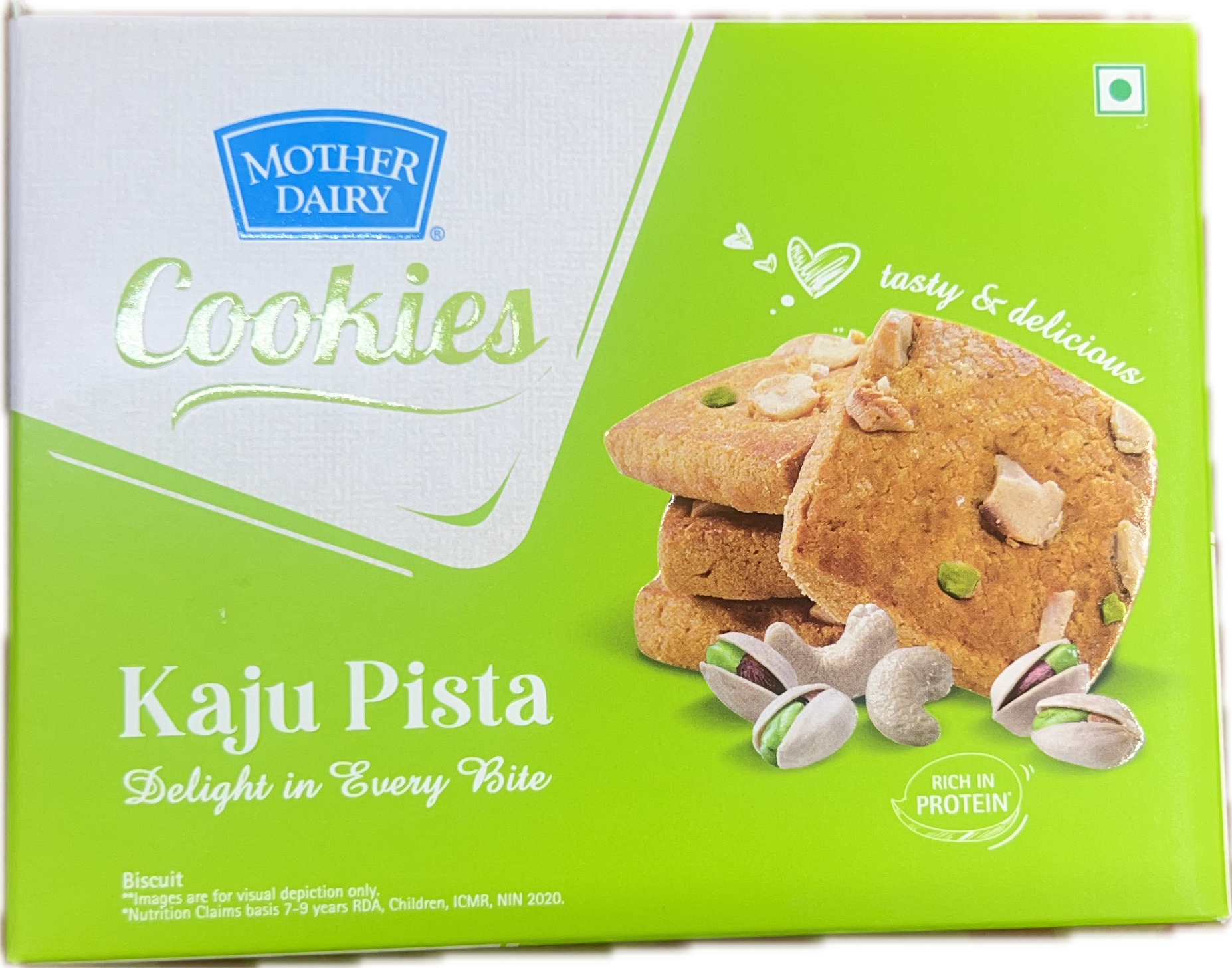 Indulge in the rich and nutty flavors of Mother Dairy Kaju Pista Cookies, made from high quality cashews and pistachios. Each 150g pack contains a perfect blend of crunchy nuts and buttery goodness, providing a delicious and satisfying snack for any occasion. Treat yourself to these delectable cookies today!