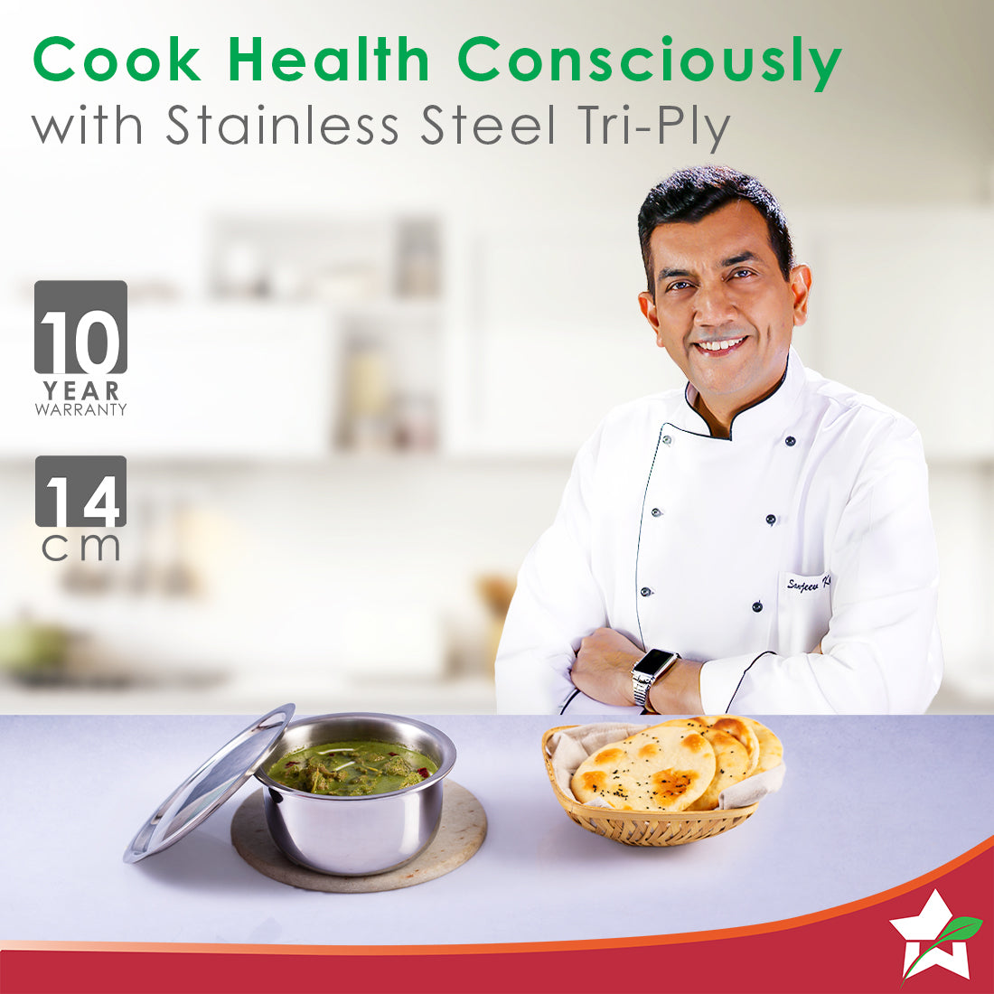 - The induction base allows greater contact with the heat source and faster cooking, helps to save 30% energy, and the Tri-ply bottom with steel-aluminium-steel ensures even cooking.