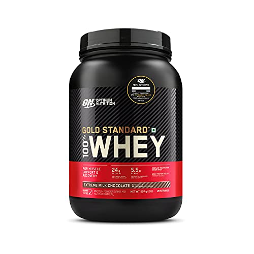 Optimum Nutrition (ON) Gold Standard 100% Whey Protein Powder – 2 lbs, 907 g (Extreme Milk Chocolate), Primary Source Isolate