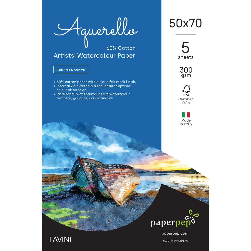 - Cold pressed; 300 GSM; Size: 50X70CM Contains 5 sheets.