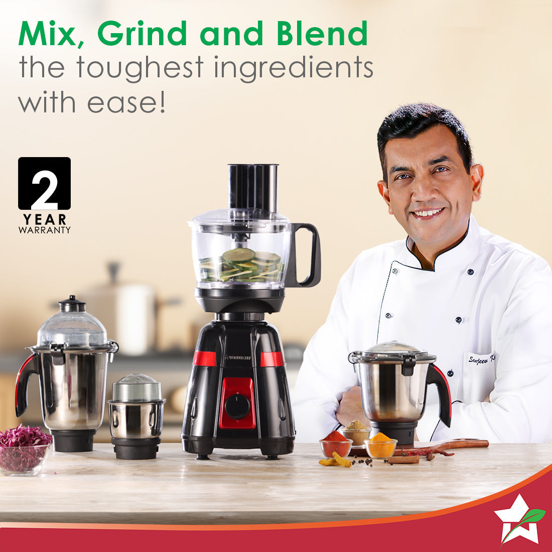 - 750W heavy-duty copper armature motor housed in our unique CURVED design. Anti-rust stainless steel blades grind even the toughest of ingredients to make amazing podi, sambhar masala, coconut chutney, garam masala, idli-dosa batter, purée, pastes, milkshakes, smoothies and much more!