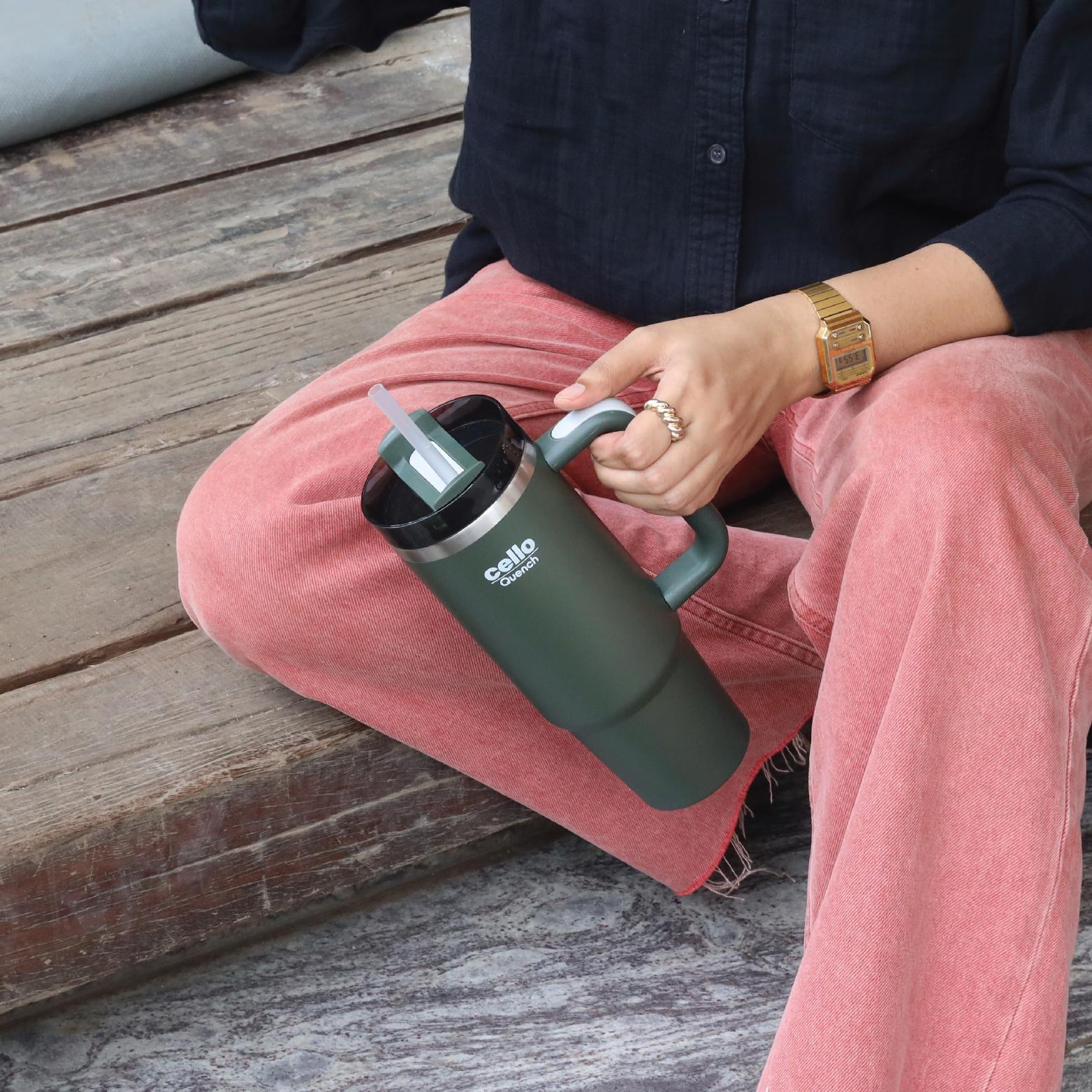 Elevate your hydration game with the Cello Quench Stainless Steel Tumbler, a perfect blend of style, functionality, and convenience. Designed for the modern, on-the-go lifestyle, this 900ml tumbler is crafted from premium food-grade 304 stainless steel, ensuring durability, rust-resistance, and no metallic aftertaste. Whether you’re sipping on a hot coffee during your morning commute or enjoying a chilled smoothie during a road trip. The tumbler features a sleek, tapered design that fits comfortably in most car cup holders, making it an essential companion for your daily journeys. Its ergonomic handle offers a comfortable grip, and an anti-splash feature ensures a worry-free drinking experience. For added convenience, the tumbler comes with a reusable straw and is dishwasher safe, so cleaning up is effortless. Perfect as a thoughtful gift or a personal treat, the Cello Quench Tumbler combines a stylish, powder-coated matte finish with practical features to enhance your daily hydration. BPA-free and made from safe, toxin-free materials, it’s ideal for coffee, tea, water, juice, and more. Embrace the ultimate in portable drinkware with the Cello Quench Stainless Steel Tumbler and enjoy your beverages just the way you like them—wherever life takes you.