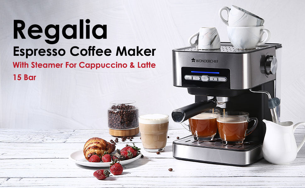 Get coffee house quality espresso, cappuccino, latté, macchiato or ristretta at home with professional grade 20 Bar Coffee Machine. For coffee lovers, a freshly brewed coffee cup is the ideal start to their mornings! When it comes to coffee aficionados, taste is everything. The right coffee machine can make this a delightful experience. Wonderchef Regalia Espresso Coffee Maker with 20 Bar (15 times atmospheric pressure) is a great choice to have that perfect coffee every time in the comfort of your home.