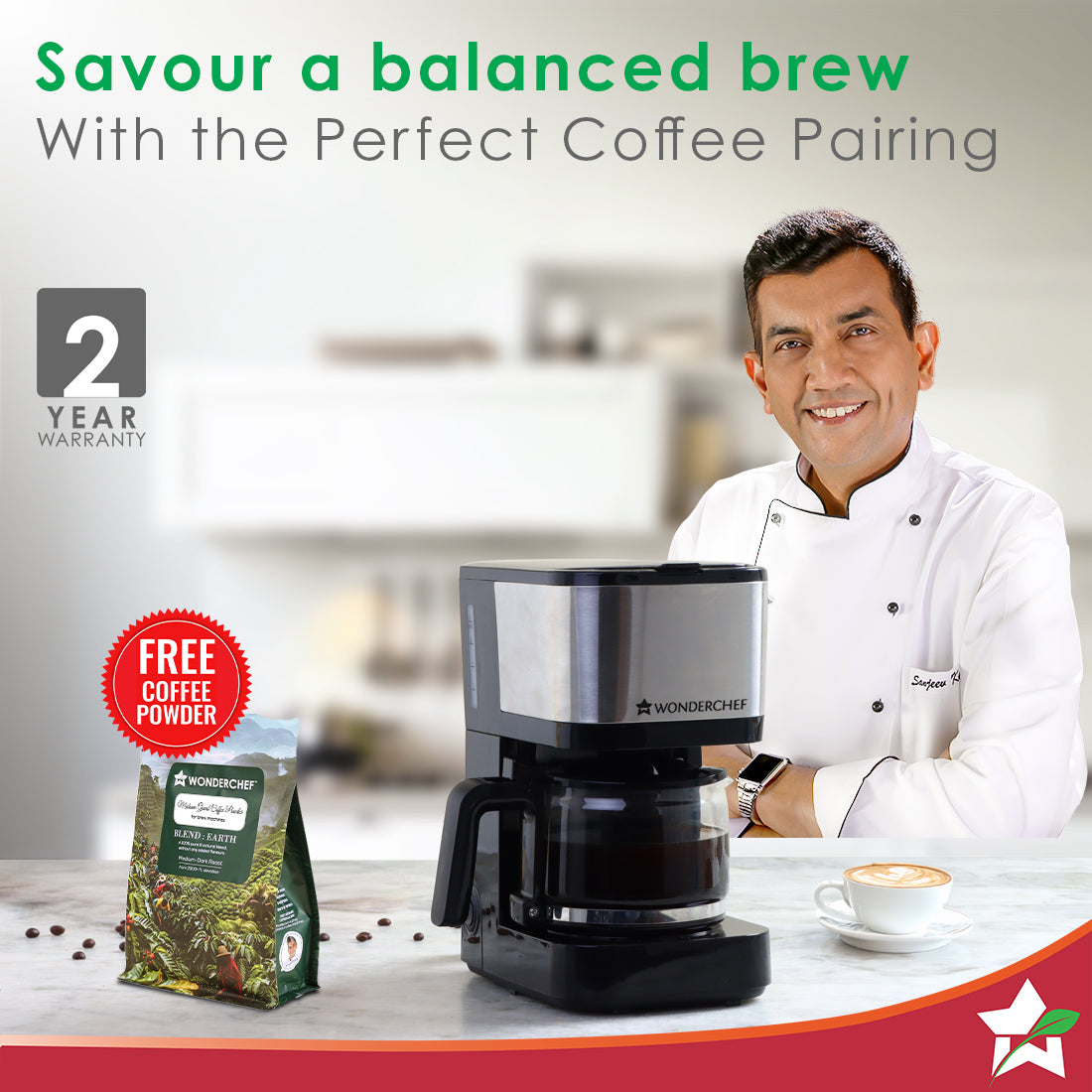 - THE PERFECT PAIRING: Wonderchef Coffee powder with its medium-dark roast, bold flavour profile, full-bodied richness and medium-coarse grind is the perfect pairing for Brew Machines. The machine’s inbuilt filter prevents any grit from seeping through as boiling water drips slowly through the coffee powder. Our coffee is crafted exclusively from naturally sourced, high-quality coffee beans. Enjoy a complimentary sample with your coffee machine. Savor each moment, and let it linger…Â