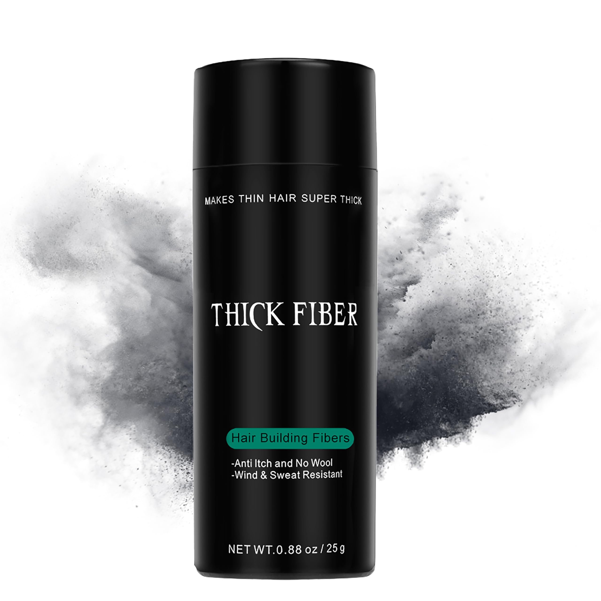 - QUALITY YOU CAN DEPEND ON: THICK FIBER hair fibers for thinning hair fibers product was made strictly with natural keratin protein fibers (the same natural compound that binds your hair strands). No harmful chemicals are ever used; it’s a completely natural hair thickener! The pure formulation of THICK FIBER is also the reason why our hair-building fibers are ANTI-ITCH and highly resistant to sweat and weather conditions. It is highly recommended to use any hair styling spray.