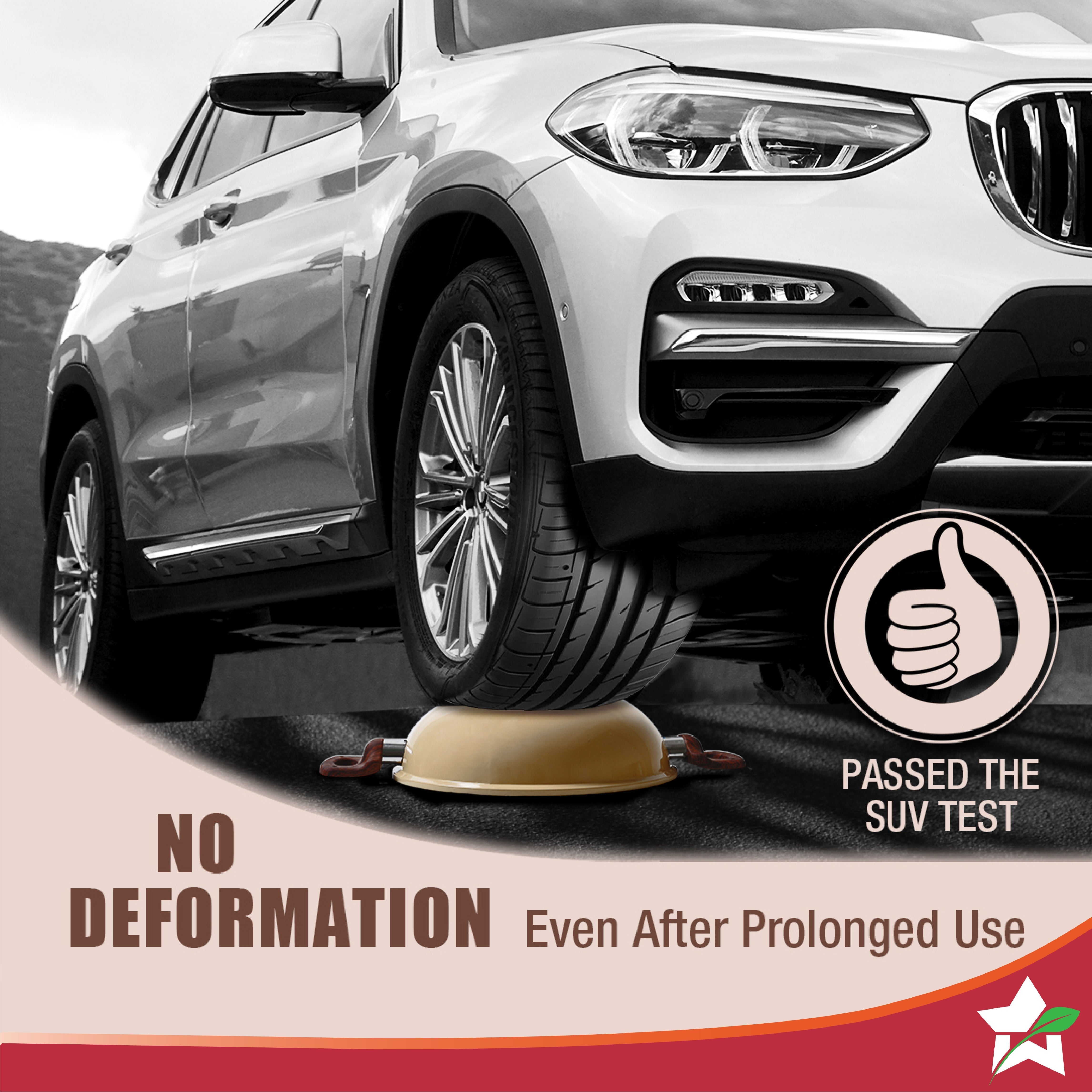 - STRONG & DURABLE – Pure Aluminium cast retains its shape even after being pressed repeatedly by an SUV in a load test, thanks to its special property of Aluminium. When molten Aluminium is poured into a cast and solidified, it turns into concrete.