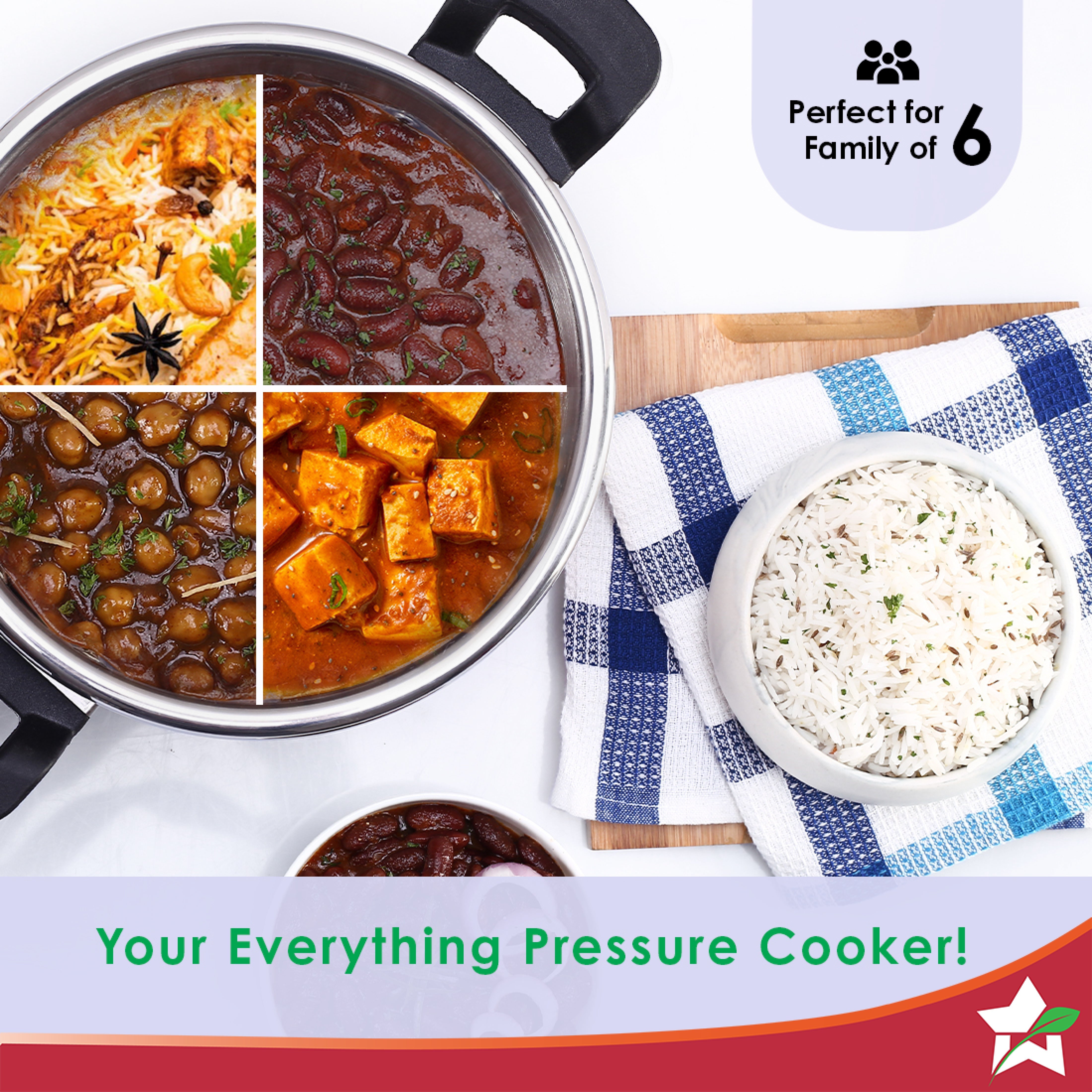 - KITCHEN ALL-ROUNDER: Versatility at its best; use this pressure cooker for sautéing, steaming, frying, boiling, deep frying, and pressure cooking. From Biryani to Cakes, and everything in between, this all-in-one cooker easily handles a wide range of dishes.
