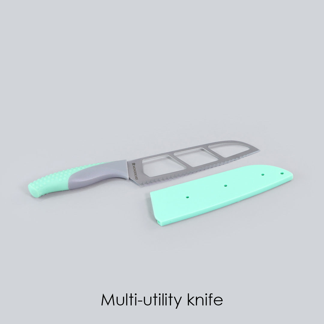 - Cut Through All Types of Fruits, Vegetables,Meat Breads & Cheeses With Ease!