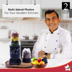 Nutri Blend Photon with Sipper Lid, Mixer, Grinder, Blender & Smoothie Maker | 400 W 22000 RPM 100% Full Copper Motor | Stainless steel Blades | 2 unbreakable jars | 2 Years warranty | Recipe book by Chef Sanjeev Kapoor | Black