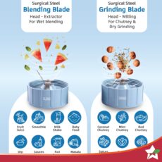Nutri Blend Snowflakes, 22000 RPM 100% Full Copper Motor, 2 Unbreakable Jars, 500W, 2 Years Warranty, Recipe book by Chef Sanjeev Kapoor, Blue