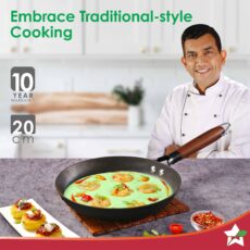 Pre-Seasoned Ferro Light 20cm Cast Iron Fry Pan | 800 ml | Acacia Wooden Handles | Gravity Moulding Technology | No Chemical Coating | 10 Year Warranty