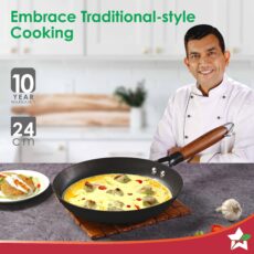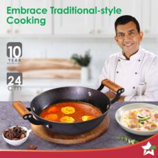Pre-Seasoned Ferro Light 24cm Kadhai | 2.3L | Acacia Wooden Handles | Gravity Moulding Technology | No Chemical Coating |10 Year Warranty