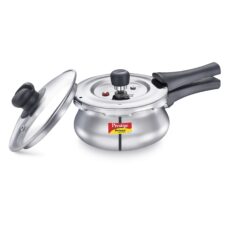 Prestige Deluxe Alpha Svachh Stainless Steel Pressure Cooker 1.5L With Glass Lid (With Deep Lid For Spillage Control )