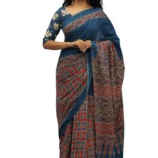 Tropwear Handicrafts Women’s Ikat Hand Block Print Jaipuri Cotton Mulmul Saree with Blouse Piece – _SH_320