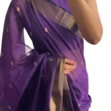WILLFE Women’s Cotton Soft Silk Jamdani Sarees With Attach Unstitched Blouse Piece (Purple)